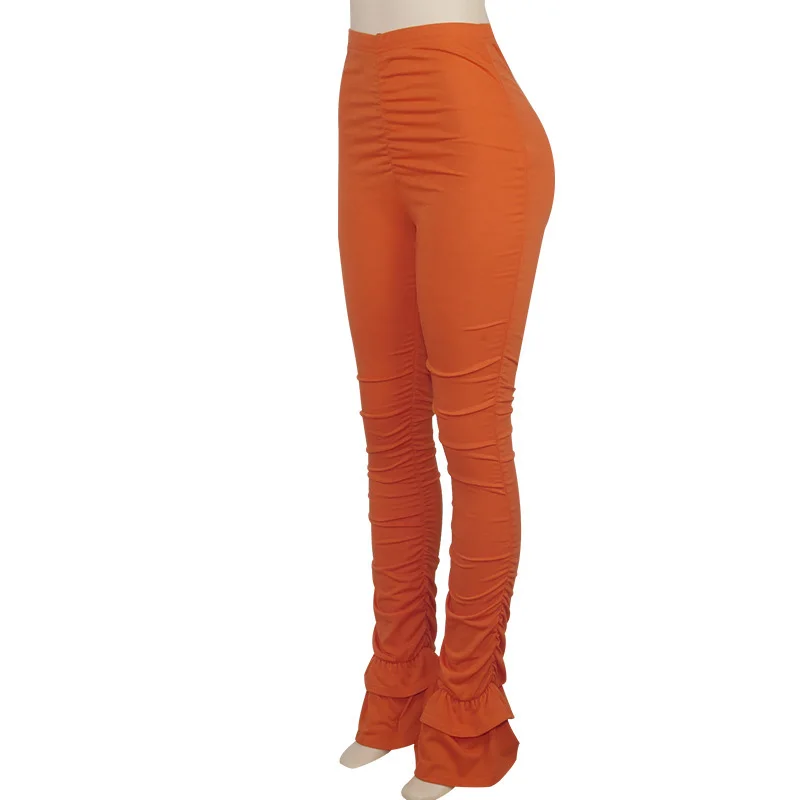 Orange Stacked Leggings Sweatpants For Women Female Skinny High Waist Ruffle Flare Pleated Pants Trousers Joggers Leggins Leggings Aliexpress